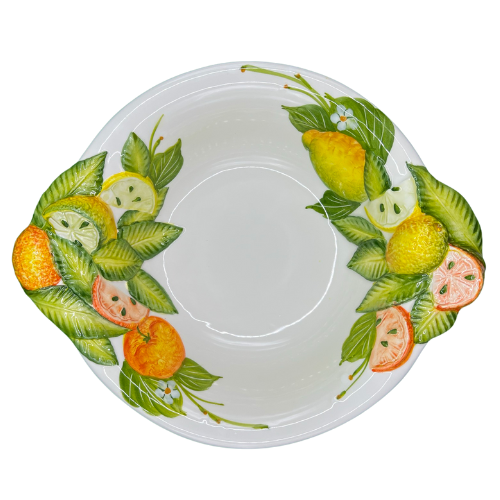 Als Obstschüssel zum Frühstück, Salatschüssel zum Mittagessen oder einfach als Snackschüssel für andere Anlässe ist sie bestens geeignet. Diese schöne große Schüssel schmücken Zitronen sowie Orangen im 3D Relief, die außerdem noch aufgemalt sind. So bringt man das mediterrane Italien garantiert auf den Tisch!
